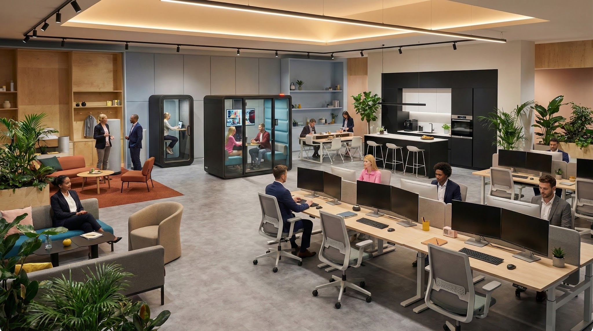 Ein modernes Büro sollte ergonomisch und funktional gestaltet sein. Die Raumplanung berücksichtigt unter anderem Arbeitsbereiche, Verkehrsflächen und Bewegungsflächen sowie Rückzugsorte für konzentriertes Arbeiten. Ein gut durchdachtes Bürokonzept integriert Meetingräume, flexible Arbeitsplätze und ergonomische Büromöbel, um den Wohlfühlfaktor und die Produktivität zu steigern.